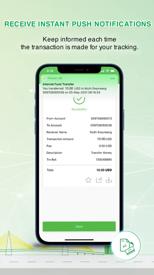 Fast, convenient, and secure are our top priority in offering you the sound banking experience. Individual account, joint or corporate account can be registered with PRASAC Mobile Banking for your daily banking transactions.