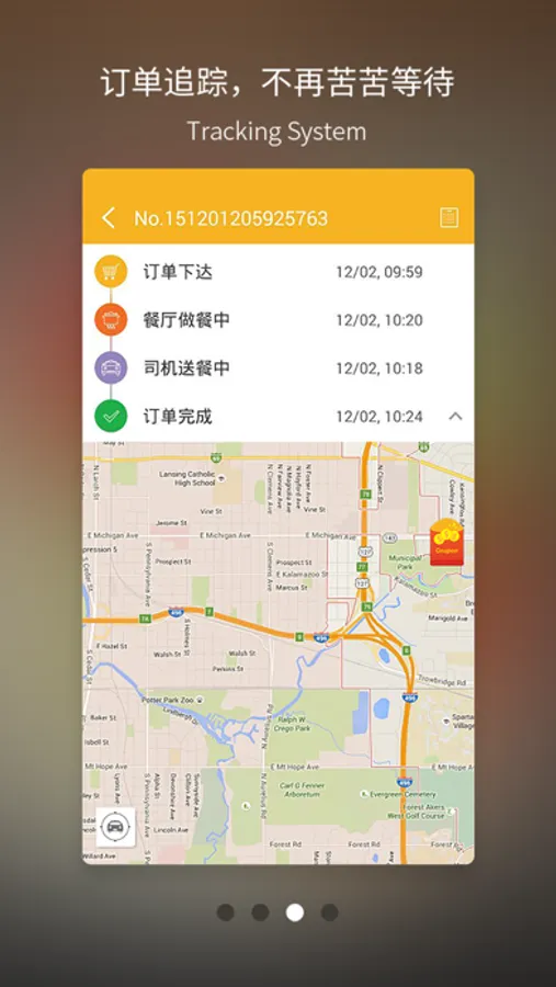 It is easy to track your order on 517 app. We provide users real time delivery tracking experience. After successfully placing the orders, users can track their order status on the map. No matter where you live, every 517 driver is equipped our latest technical device which helps them choose the shortest route to deliver food to you.