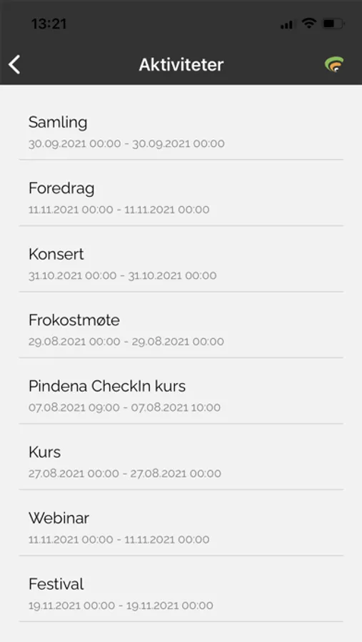 • Aktivitetsliste viser alle kommende aktiviteter sortert på dato