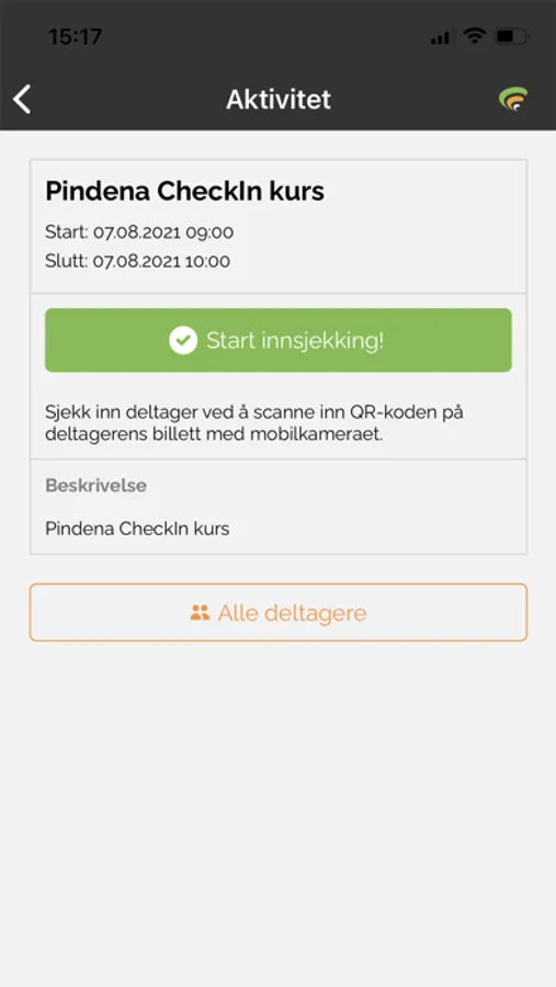 • Aktiver QR-kode for aktiviteten i Pindena, slik at den automatisk sendes med påmeldingsbekreftelsen
