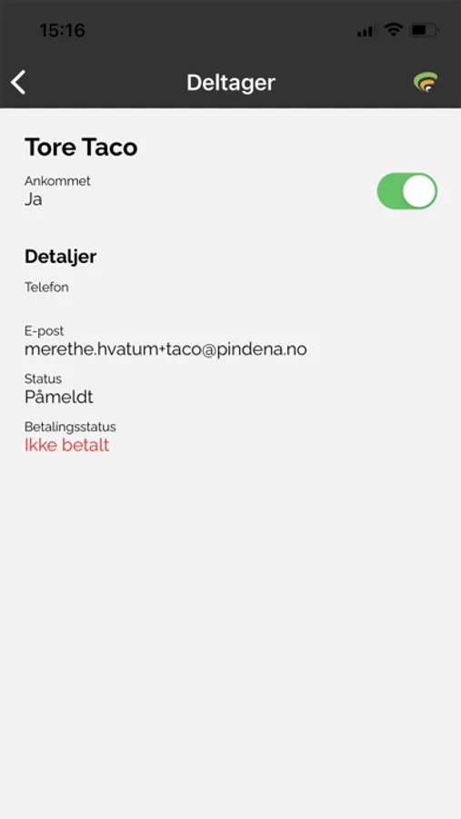 • Dersom det er lagt inn pris, antall billetter eller kommentar vil dette vises på deltageren og ved skanning av QR-kode