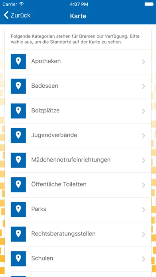 Straßen-Special für Bremer: In diversen Kategorien werden bei Google Maps Standorte im Bremer Stadtgebiet angezeigt, z.B. Parks, Bolzplätze, Skateranlagen, soziale Hilfsdienste, Rechtsberatungsstellen, Sportvereine, öffentliche Toiletten.