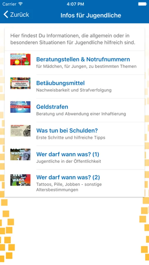 Ein Infobereich für Jugendliche mit Wissenswertem zu vielen Themen, z.B.: