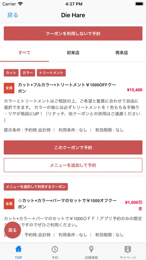 お得なクーポンが配信されます。ネット予約時にクーポン利用での予約も可能なので来店時もスムーズに施術頂けます。