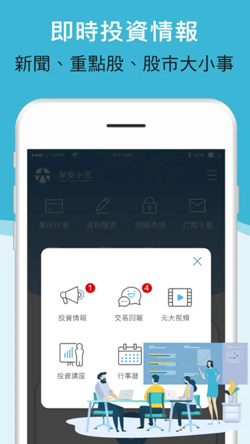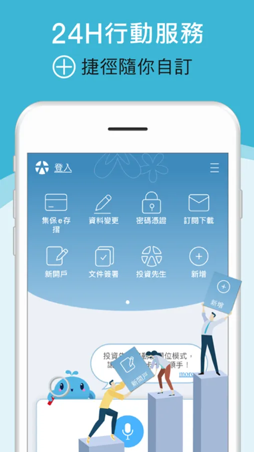 提供密碼解鎖、申請憑證、簽署電子文件、修改變更資料、線上開戶等超過12項投資人最常用功能,讓萬事通行動分行服務您!