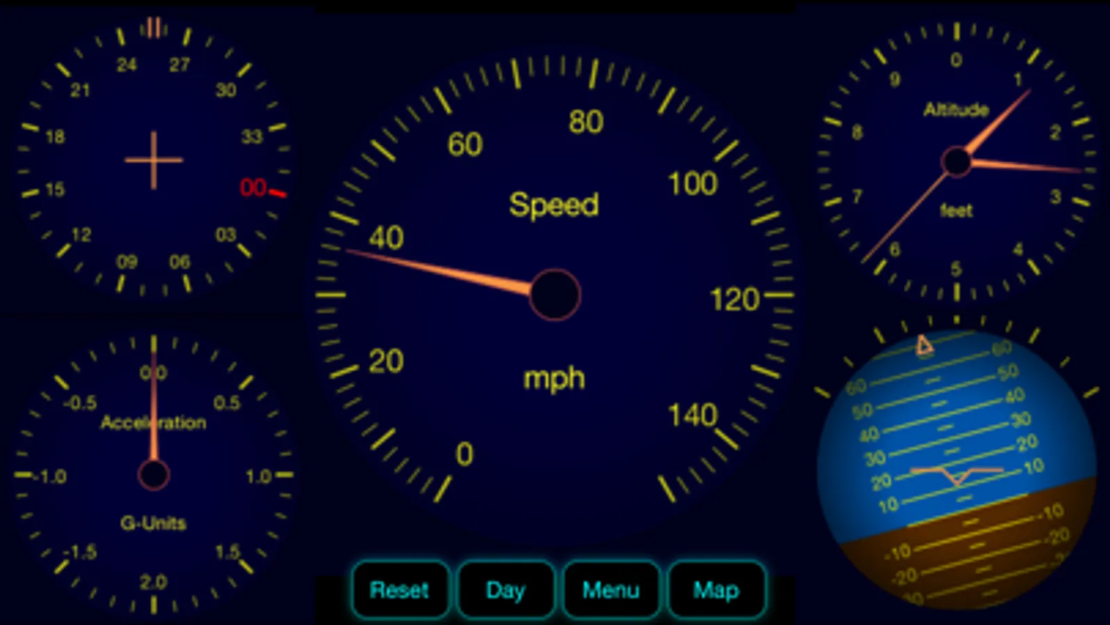 In use Personal IDR normally displays a car dashboard (or map of your track) and the mode of operation is similar to custom built devices in common use with many public and private organisations. Personal IDR detects when a significant acceleration event takes place or it can be triggered manually. To trigger manually, simply DOUBLE-TAP on the speedometer. You may want to trigger the device after passing a speed check for example.