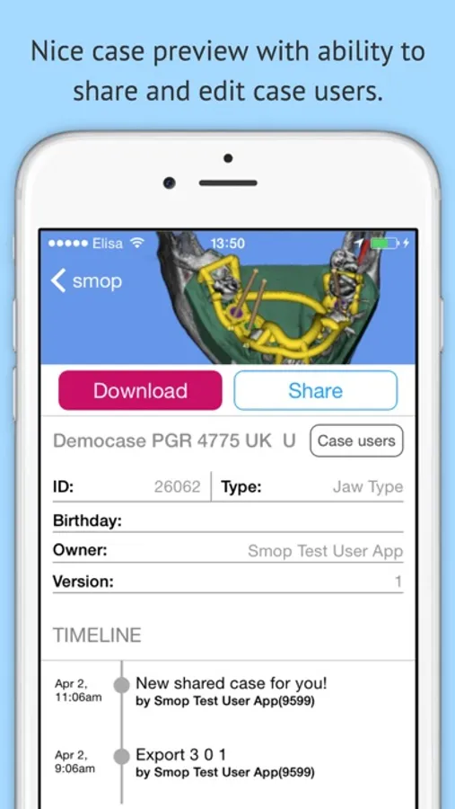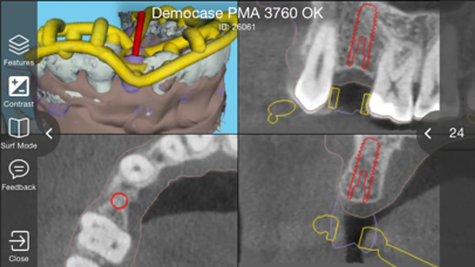 In the app you can surf through all slices in all relevant areas and directions and you can comment implant planning and designed drilling templates.