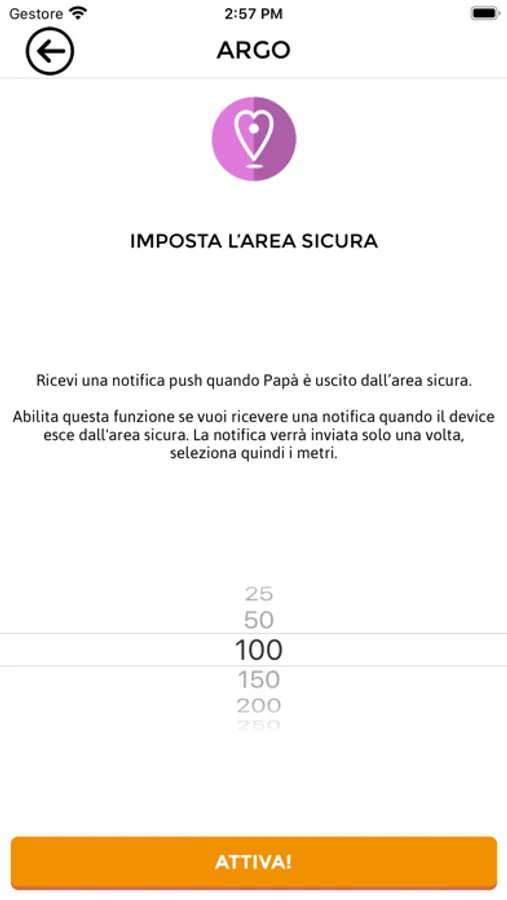 - Argo esce dall’area sicura, che tu puoi impostare in modo facile e immediato