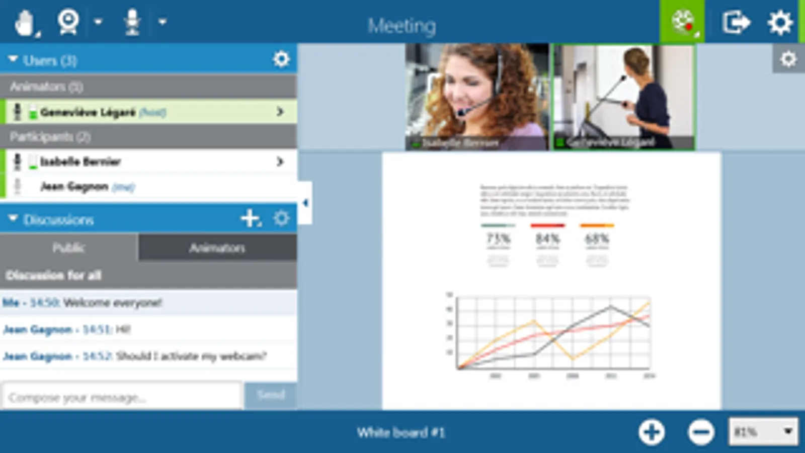 - Presentation of documents (Office, PDF, images, multimedia, whiteboard)