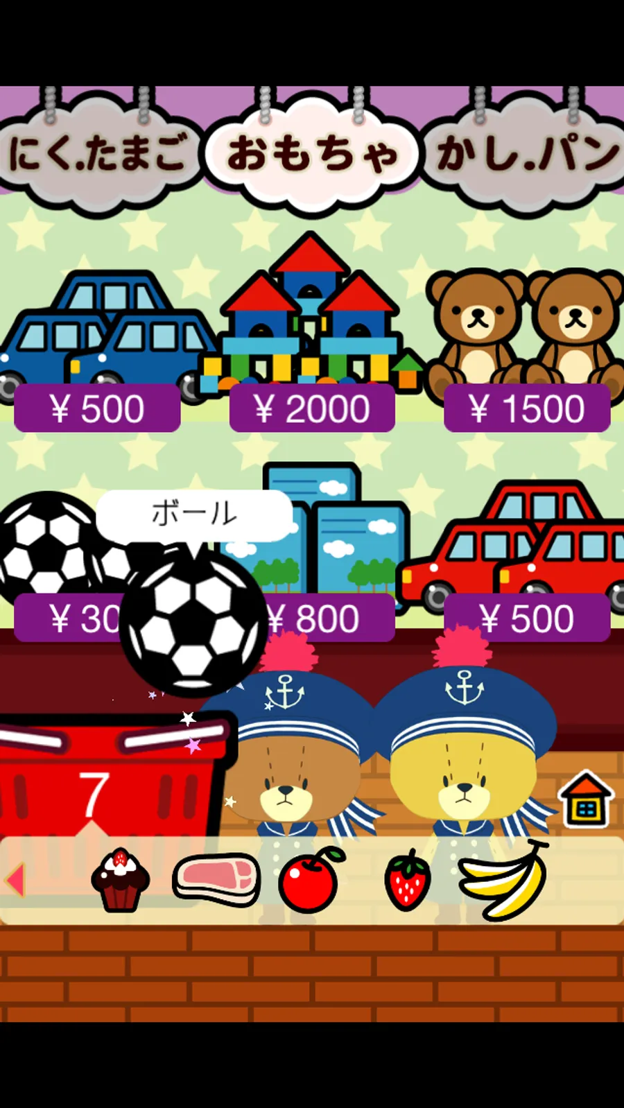 ルルロロと一緒にお買い物ごっこで遊びましょう。