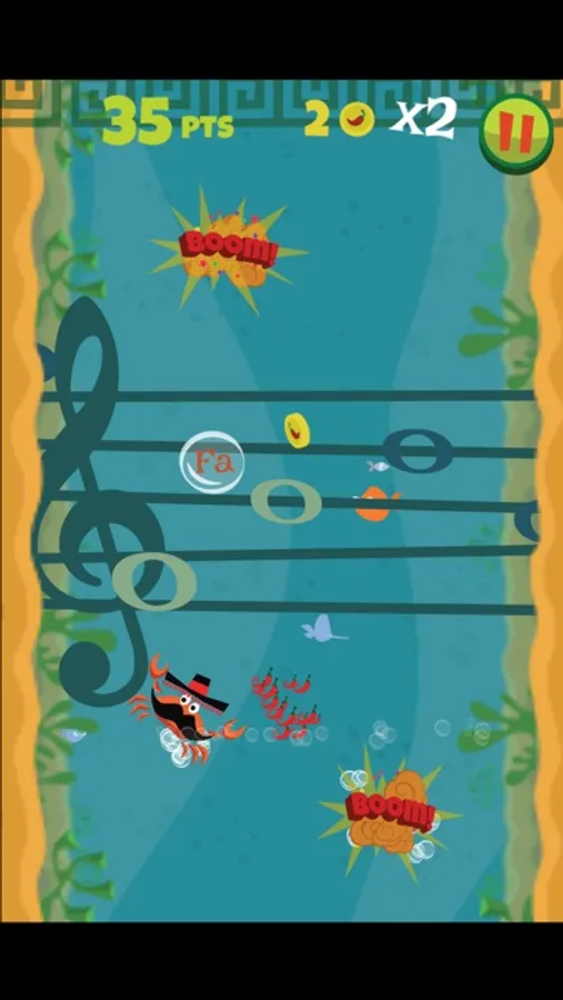 In this game the child will experience what have been learned about the notes sequence to help Chili Crab collect musical notes passing through the screen. The notes must be collected in a certain order that changes at each play, but always according to the notes ascending and descending sequences. To make it even more fun, the levels are full of collectable coins and power-ups to help the player.
