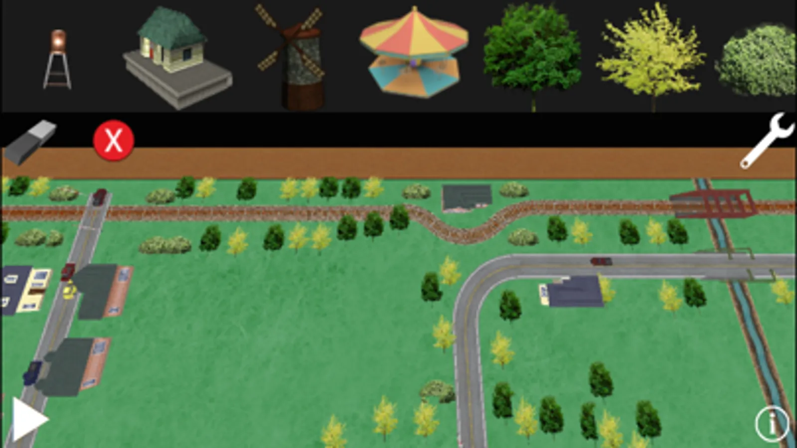 Purchase the optional Train Builder Kit to build your own train layout and share it via email with your friends. Others only need the free version and your email. Create your own model railroad from our extensive menu of train cars, track pieces, roadways, automobiles, rivers, buildings, trees and other items. Automobiles automatically follow the roadway, and stop at train crossings. Windmills and Merry Go Rounds are animated. Purchase the Train Builder Kit as an In-App purchase on either iOS or Apple TV and use on both. Layouts are stored in the cloud and accessible from both. Email your layout (using iOS version) to a friend and they can easily download the free version to play. They can later purchase the Train Builder Kit to add additional features themselves.