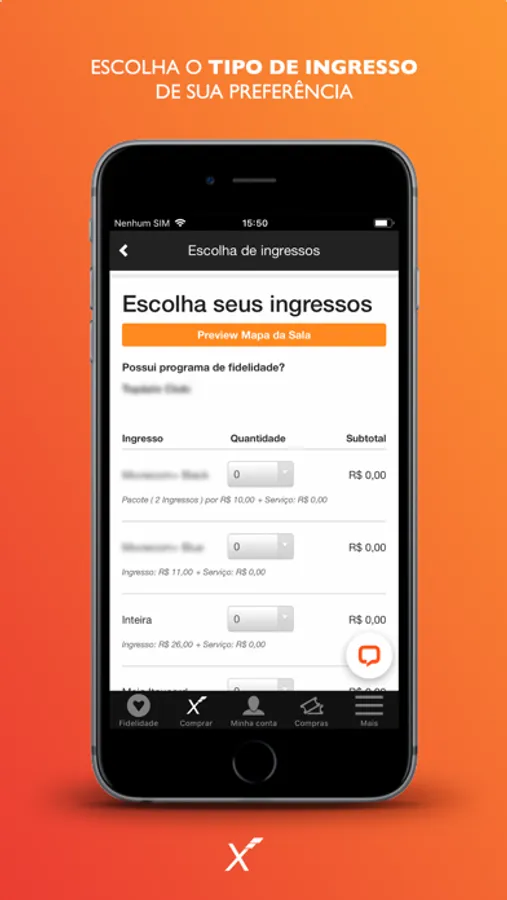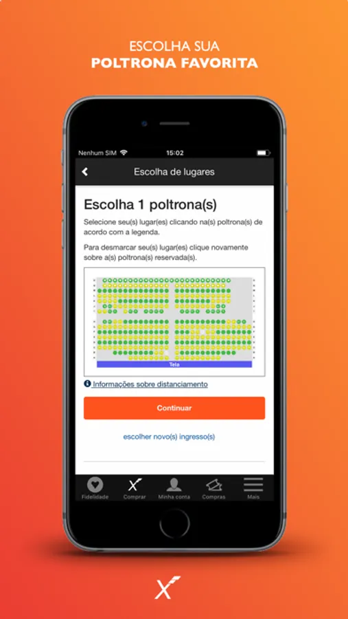 - Escolha a data, horário e sua poltrona antecipadamente;