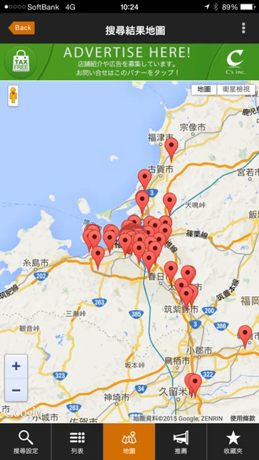 ●以地圖形式顯示搜尋結果