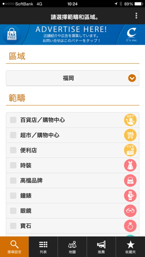 ●登載了各地區的所有免稅店