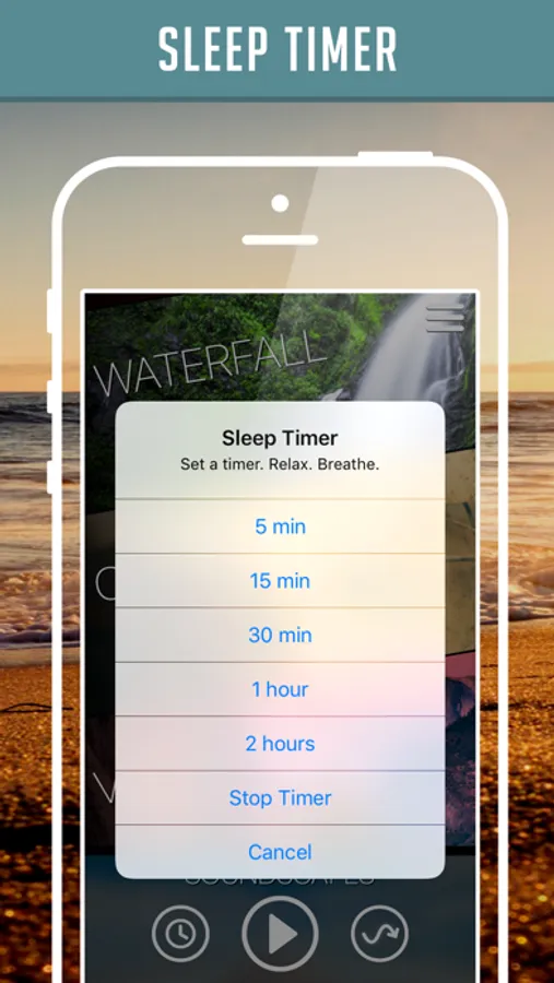 Additionally the app features an oscillator, a sleep timer, and background audio. The oscillator control slowly pulses the volume of the track, enhancing the soothing effects. The sleep timer will stop the audio after a selected time. This feature doesn't have to be used to fall asleep. It is also a great solution for getting some YOU time during yoga, meditation, or simply relaxing. The background audio feature allows you to leave the app while the sounds continue to play. You can use the universal audio controls to start and stop the audio from anywhere on your device.