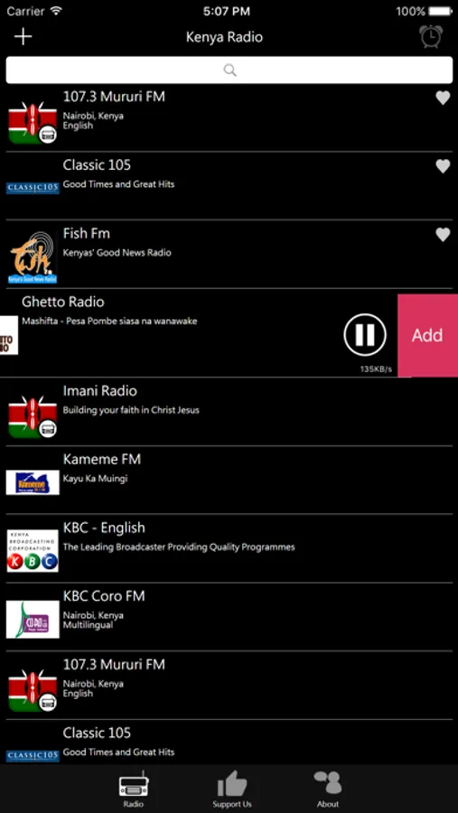 Kenya Radio offers different radio channels in Kenya to mobile users. You can easily find and listen to the broadcast anytime anywhere. Choose and Click to Listen brings you the convenience app experience.