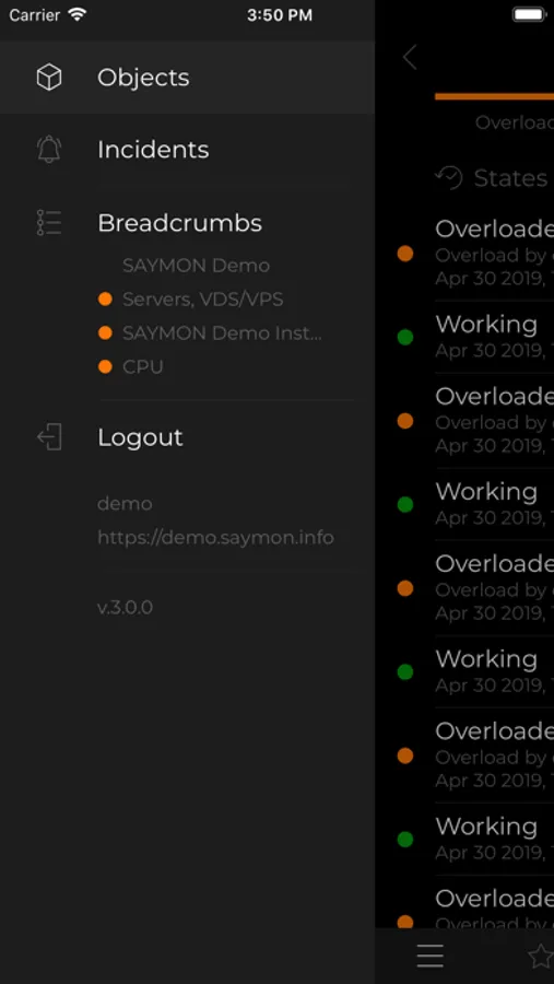SAYMON application allows you to connect to your SAYMON monitoring service and view current status of servers and websites you are monitoring.
