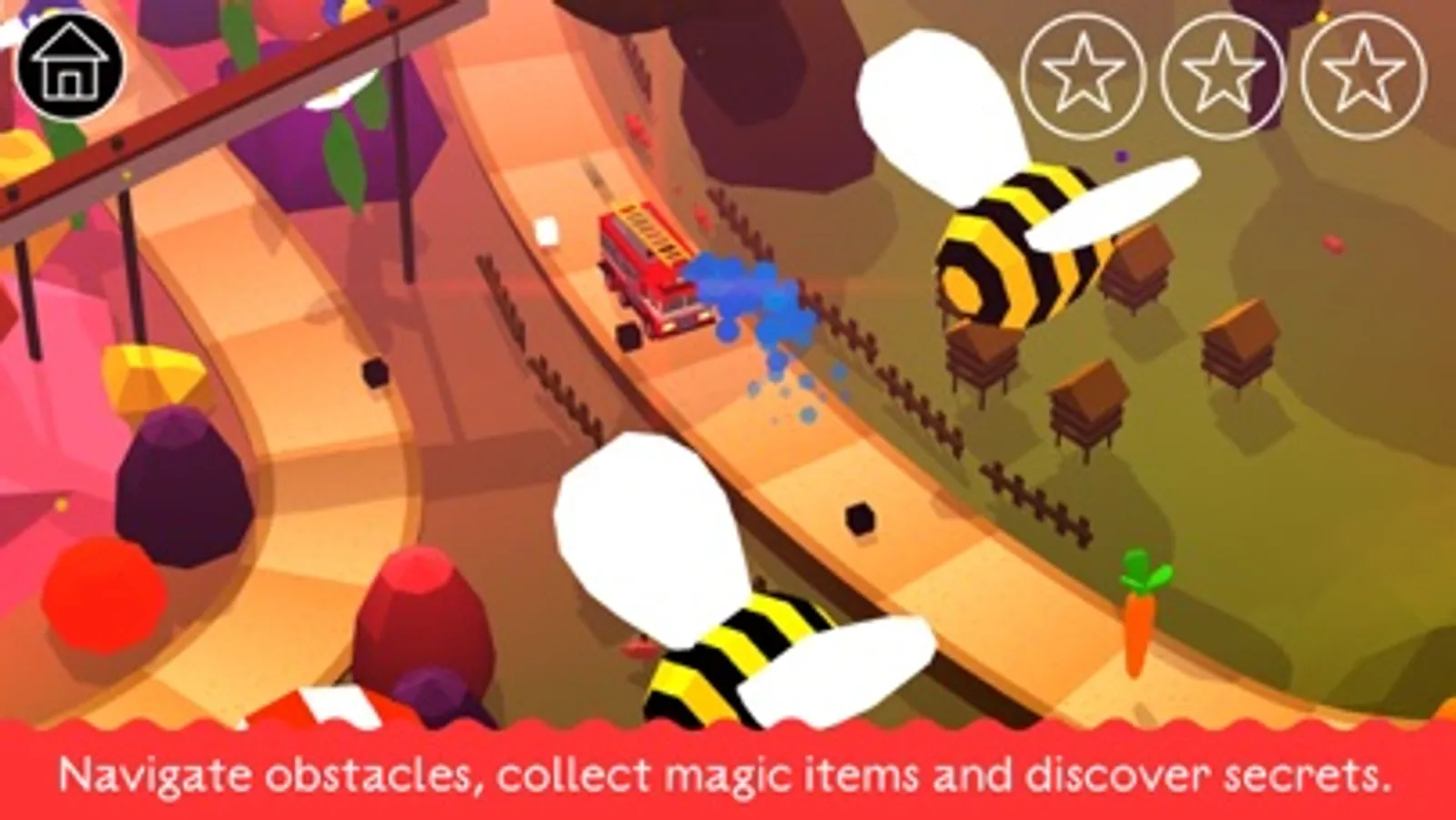 Choose your car and direction to start your adventure. Overcome obstacles by collecting magic items and unlock the unique talent of each vehicle.