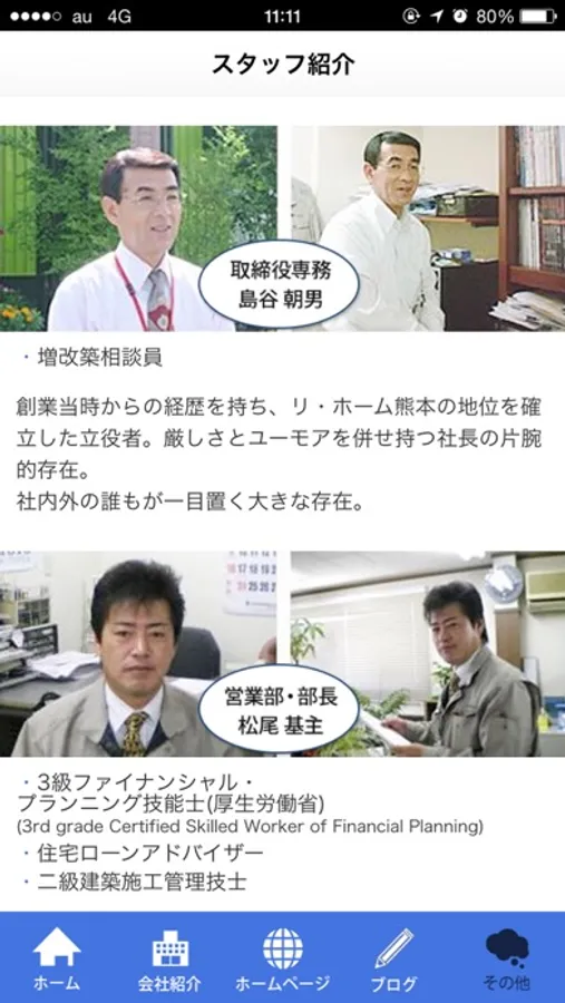 会社紹介やスタッフ紹介など、アプリならでは限定サービスが搭載されています。
