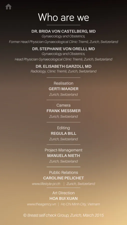 Independently developed by three renowned Swiss medical specialists. The app shows you how to scan your breasts properly - with cinematic instructions for different breast sizes. Find out which aberrations to watch out for and create your own push message, reminding you that it's time for the check again.