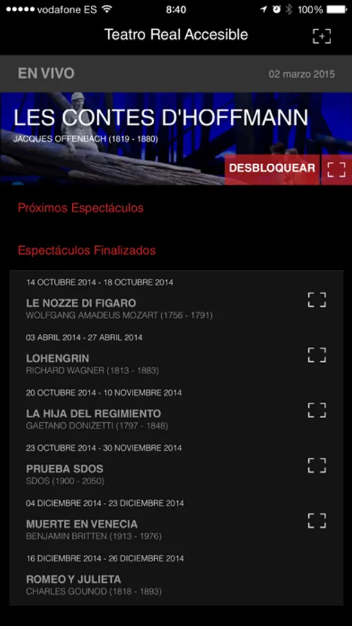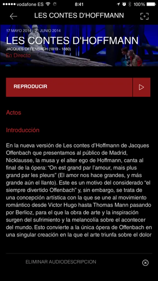 La aplicación Teatro Real Accesible es una aplicación promovida por la Fundación Teatro Real con el apoyo de la Fundación Vodafone España y desarrollada por la empresa SDOS.