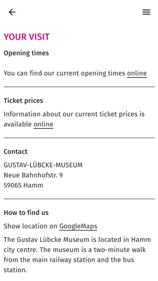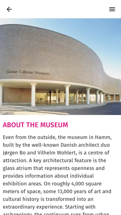 The official app for the Gustav Lübcke Museum Hamm provides information about everything to do with your museum visit.