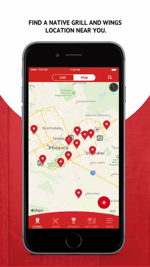 -Map view- Uses your phones GPS to find the closest Native Grill & Wings store location.