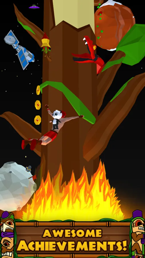 A raging fire is spreading through the jungle putting local wildlife in danger. With all directions set ablaze by a fiery inferno, rescue the lovable but exceptionally inflammable baby panda and take the only route out; up the endless jungle tree! Using your thumbs to control the ragdoll climber’s hands you can swipe, swing and fling your way to safety.
