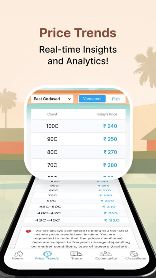 - Price Trends : Get the latest prices in your area and also get price analysis to understand the market trends to make decisions on when to sell your harvest.