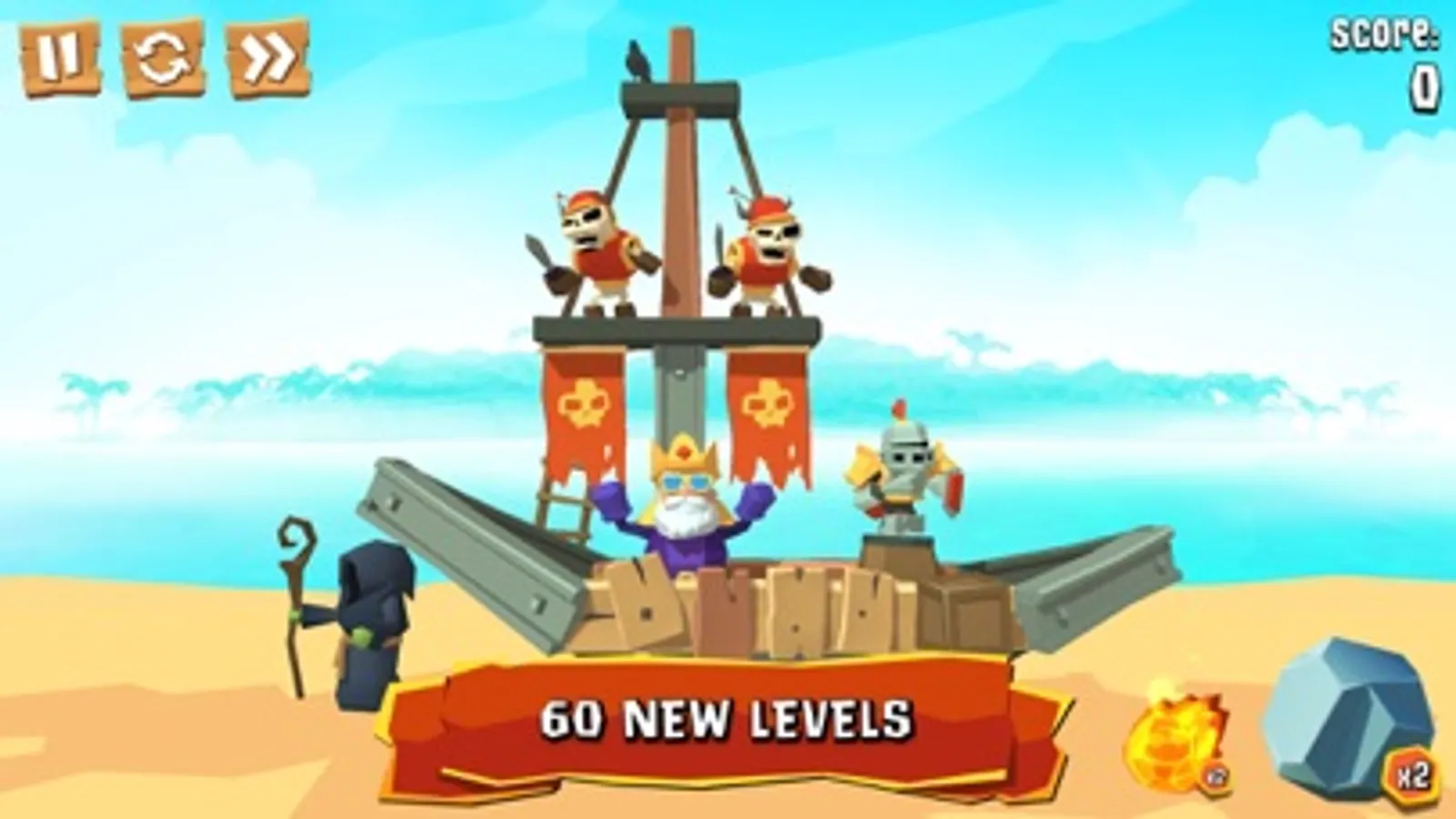 The king has sold off all of the royal army to fuel his loot box addiction and you must use the only tool left - your trusty trebuchet - to fend off the invaders trying to take over the kingdom. From rolling green fields to deep deserts and beyond, smash into the enemy strongholds and take out its treasonous inhabitants.