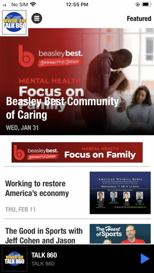 You decide when you want to listen, and when you want to browse by turning the live stream off or on within the app. Get what you want off the radio with the WWDB AM Talk 860 app.
