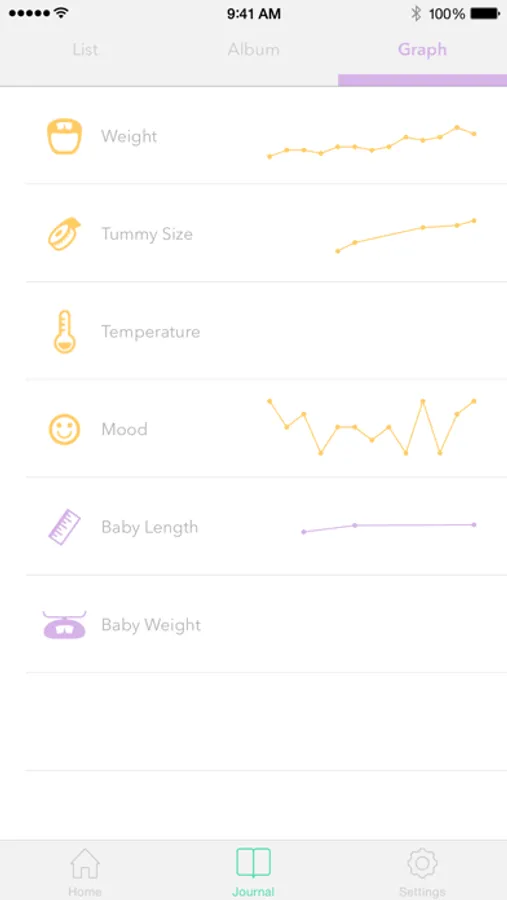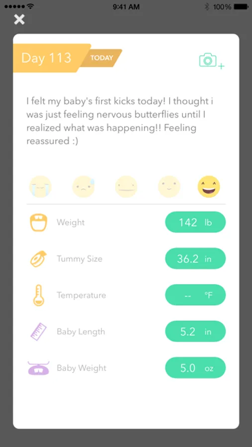 • Track and graph weight, tummy size, mood, and more