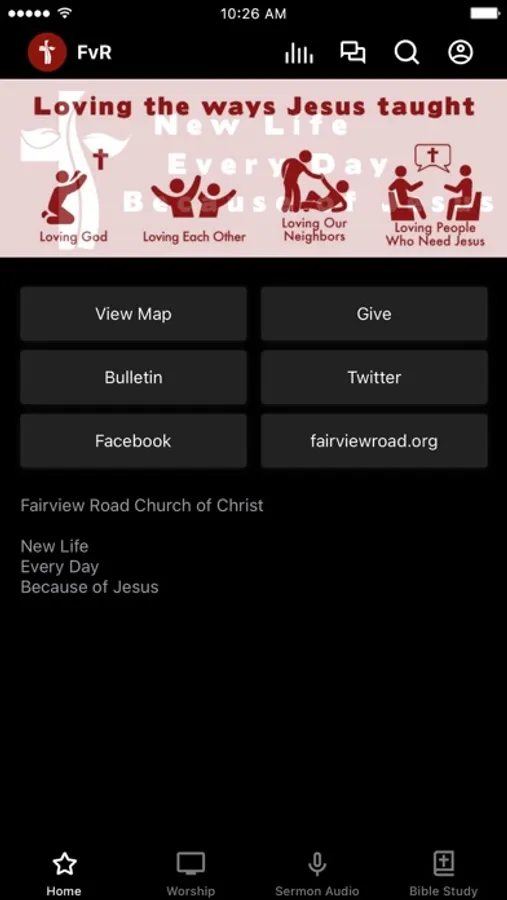 The Fairview Road Church of Christ App was created with the Subsplash App Platform.