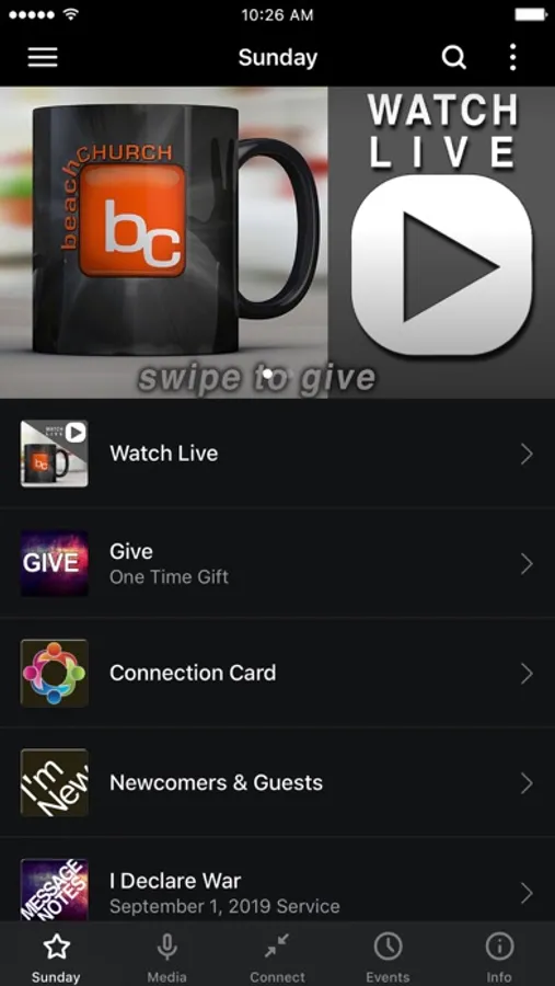 Welcome to the Beach Church app. Check out all kinds of content that interests you. After you've downloaded and enjoyed the content, you can share it with your friends via Twitter, Facebook, or email.