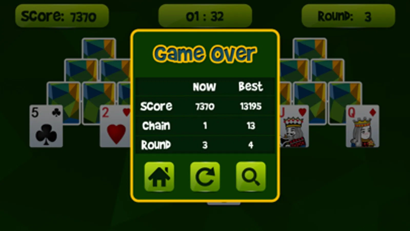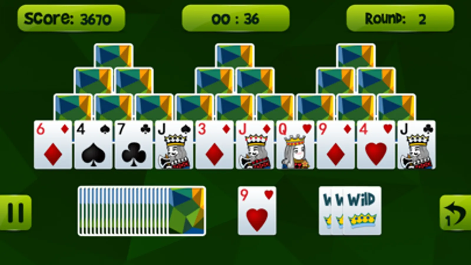 A solitaire game with three connected card pyramids. Build regardless of suit counting up or down from the card on top of the pile.