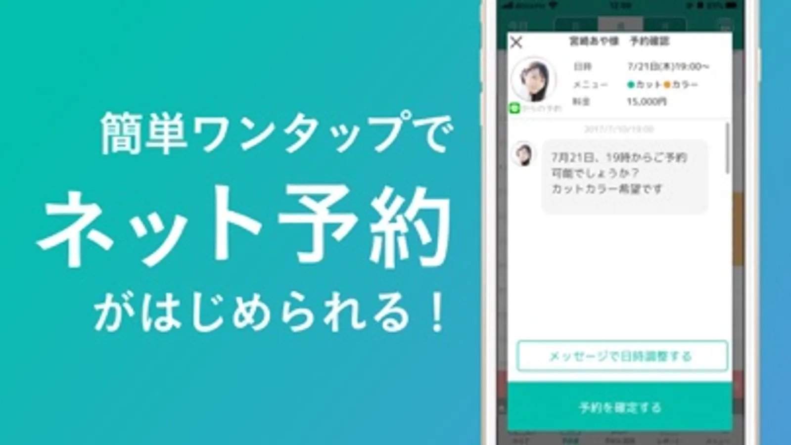 +お客様への予約案内もURLを送るだけ。お客様に予約専用アプリを利用してもらうことでメッセージやカルテ共有も可能になります!