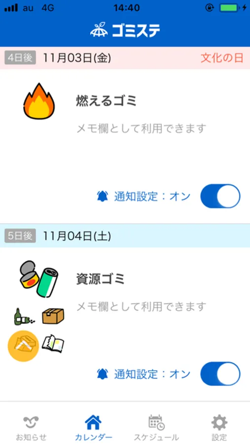・日付別メモができるから、長期旅行前のゴミ出しを忘れる心配なし!