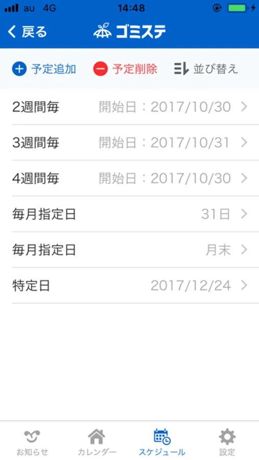 ・毎週ださない「衣類」などは種類別でアラーム設定をOFF!
