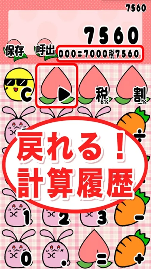 計算の途中経過が表示され、押し間違えても戻れる機能付き