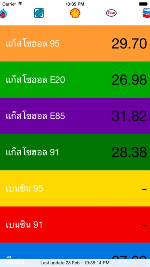 ○ ดูข้อมูลราคาน้ำมันจากปั้มต่างๆ ภายในประเทศไทย ได้แก่