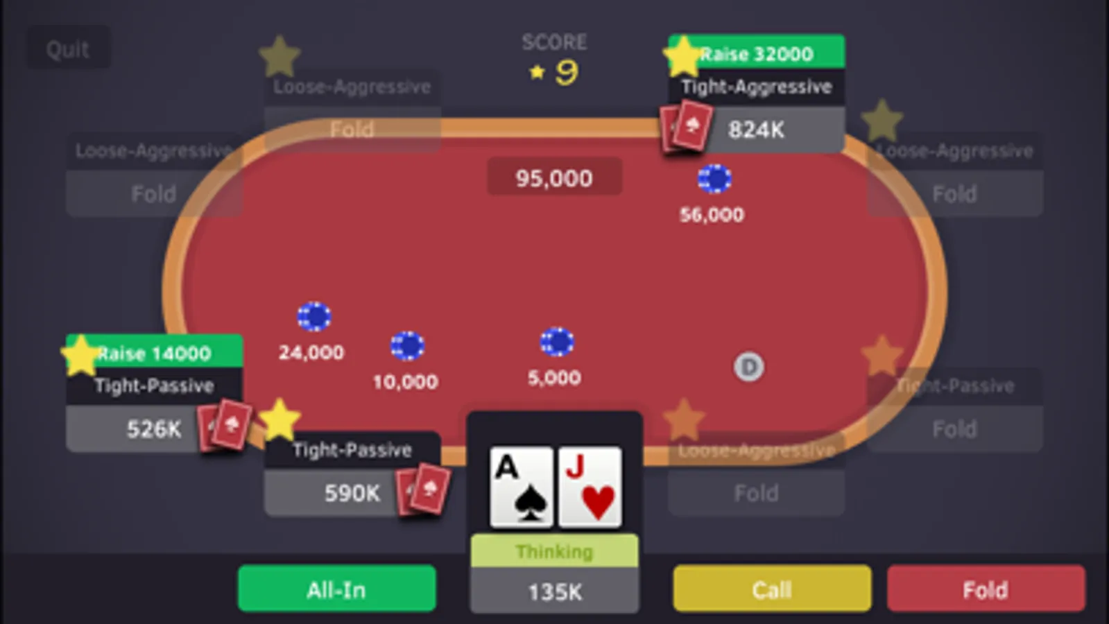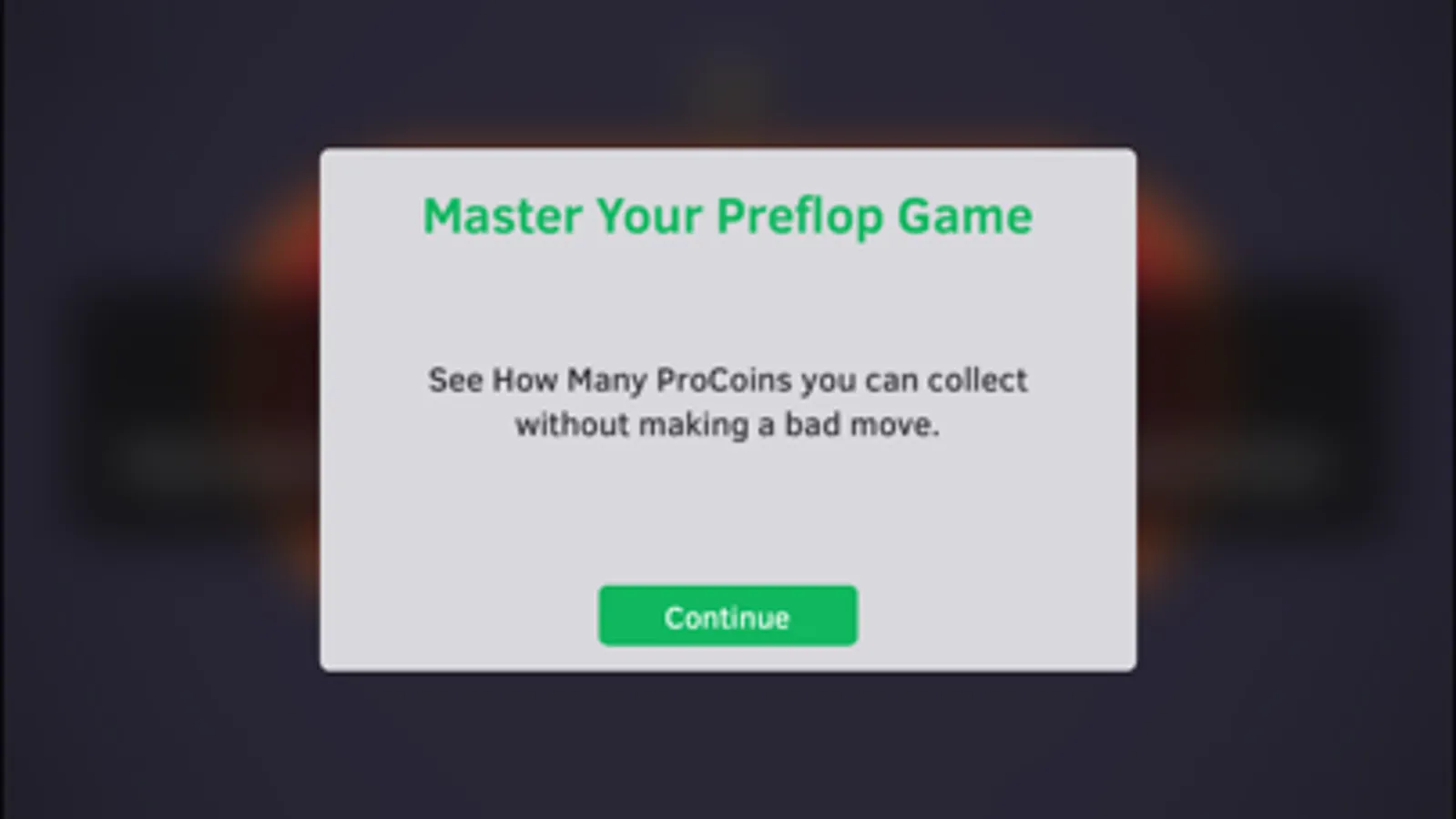 Hold'em Preflop Coach is a fast paced game that challenges you to make good preflop decisions. A bad preflop decision most certainly will cost you money in the long run. In the game you are presented with different preflop situations, make good choices and you get points, however once you make a bad choice you are busted!