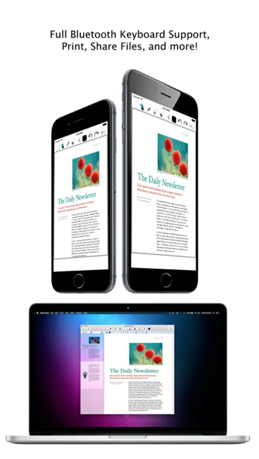 With iCloud Drive, you can take Notes on the go and have your Notes ready at your Mac or Windows PC already downloaded when you get home* And If that wasn’t enough, PDFs and RTFs can be transferred instantly from one device to another with iCloud HandOff so you can start working on one device, and continue on another (iPhone, iPad, and Mac)**