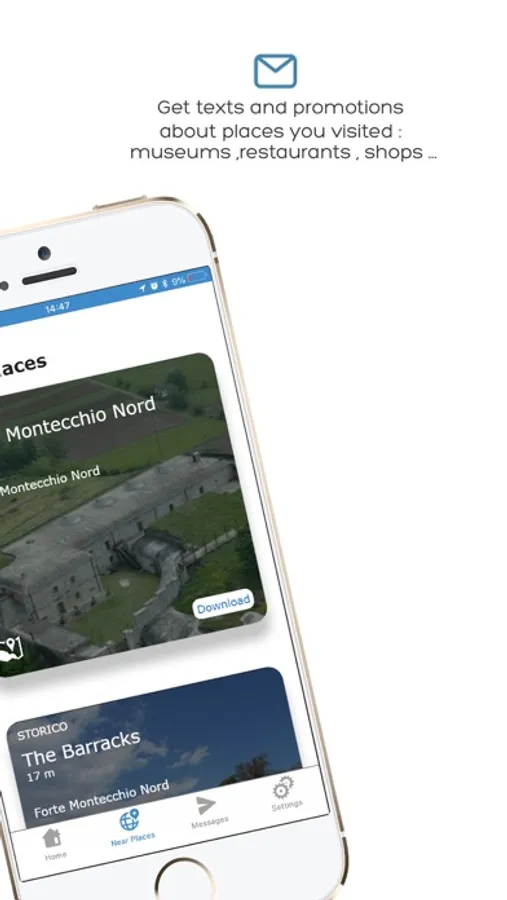 Thanks to beacons technology, the app will draw your attention to everything worth noticing in the surroundings whether you are sightseeing , shopping or trekking you will no longer miss any place of interest, restaurant, sight, special discount or offer.