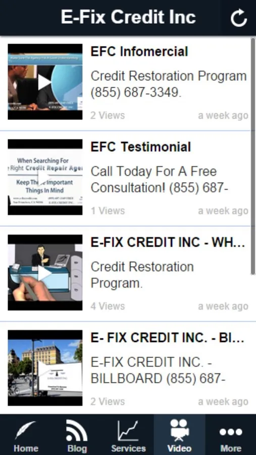 Personal Credit Information, Business Credit Information, Blog Updates, YouTube Videos & Commercials, and Contact Information.
