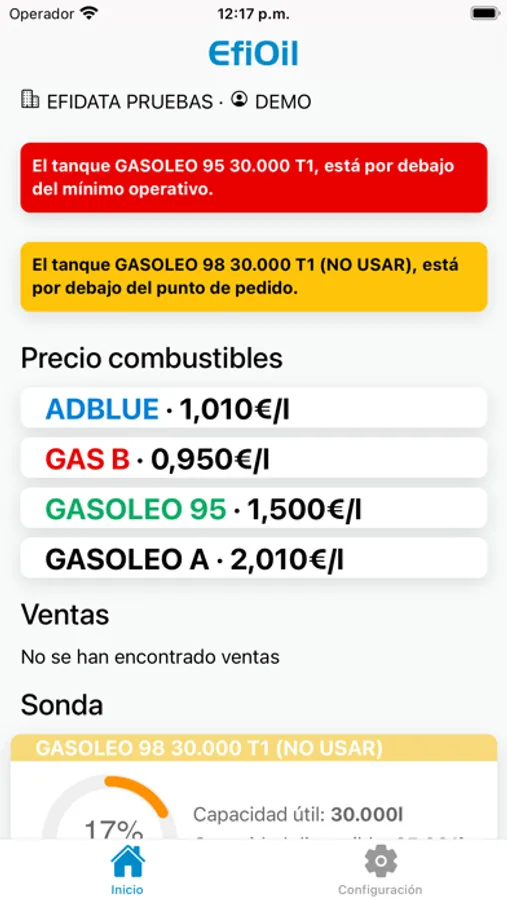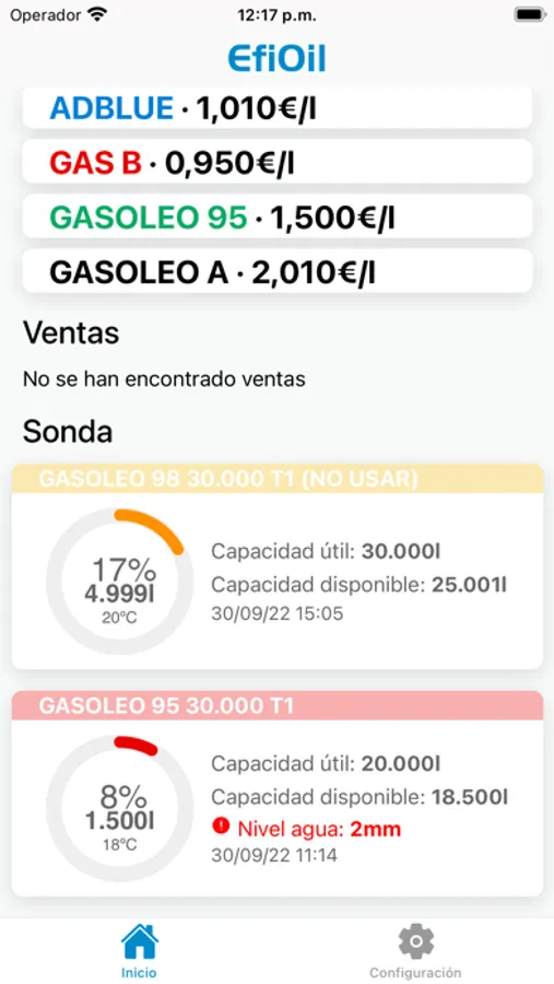 App para visualizar ventas, sonda y precios de la estación de servicio