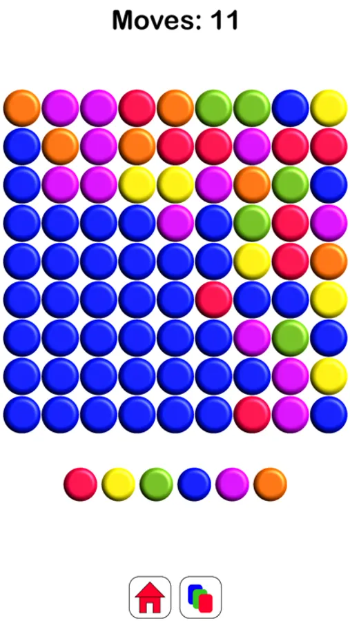 Touch a color button at the bottom to flood with that color
