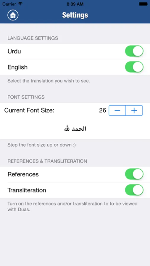 - Adjustable font size