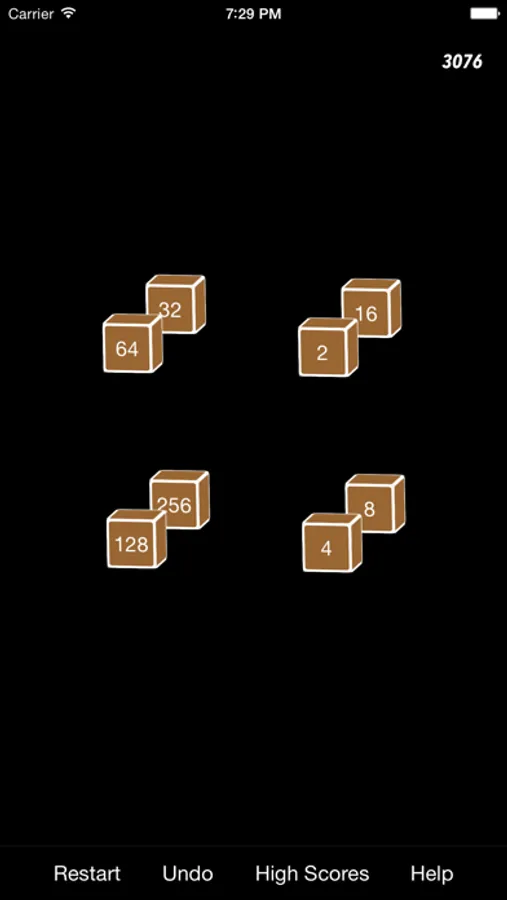 The play area is a cube whose eight corners can hold a number or be empty. You get points by combining a pair of numbers that are equal.