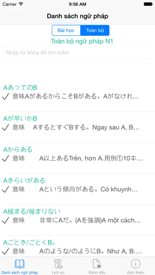 - Tìm kiếm, hiển thị tất cả các mục ngữ pháp